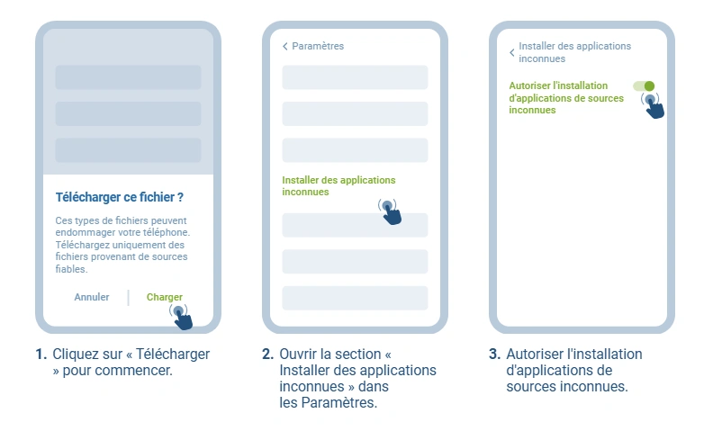 Si vous recevez un message indiquant que l’installation est bloquée, assurez-vous que vous avez activé l’option d’installation des applications provenant de sources inconnues, comme décrit à l’étape 4.
