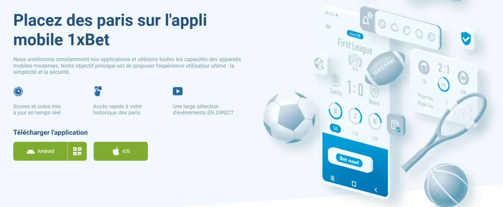 L’application 1xBet propose une offre complète de paris mobiles pour les passionnés de sport en Suisse. Que vous utilisiez un appareil Android ou iOS, l’application vous permet de placer facilement des paris sur vos événements sportifs préférés et de gérer votre compte à tout moment et en tout lieu. Vous trouverez ici des instructions détaillées sur la manière de télécharger et d’installer l’application 1xBet sur les deux plates-formes.