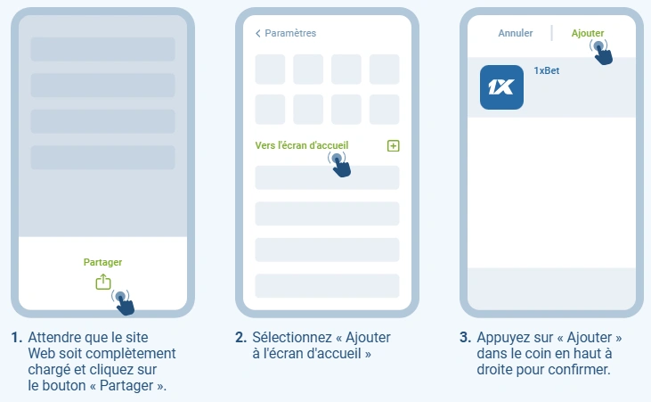 Si vous ne trouvez pas l’application dans l’App Store, vous pouvez aussi la télécharger directement depuis le site web de 1xBet. Pour cela, il vous suffit d’ouvrir le site web dans votre navigateur Safari et de naviguer jusqu’à la section « App mobile ». Là, cliquez sur le lien de téléchargement iOS et suivez les instructions à l’écran pour installer l’application avec succès.